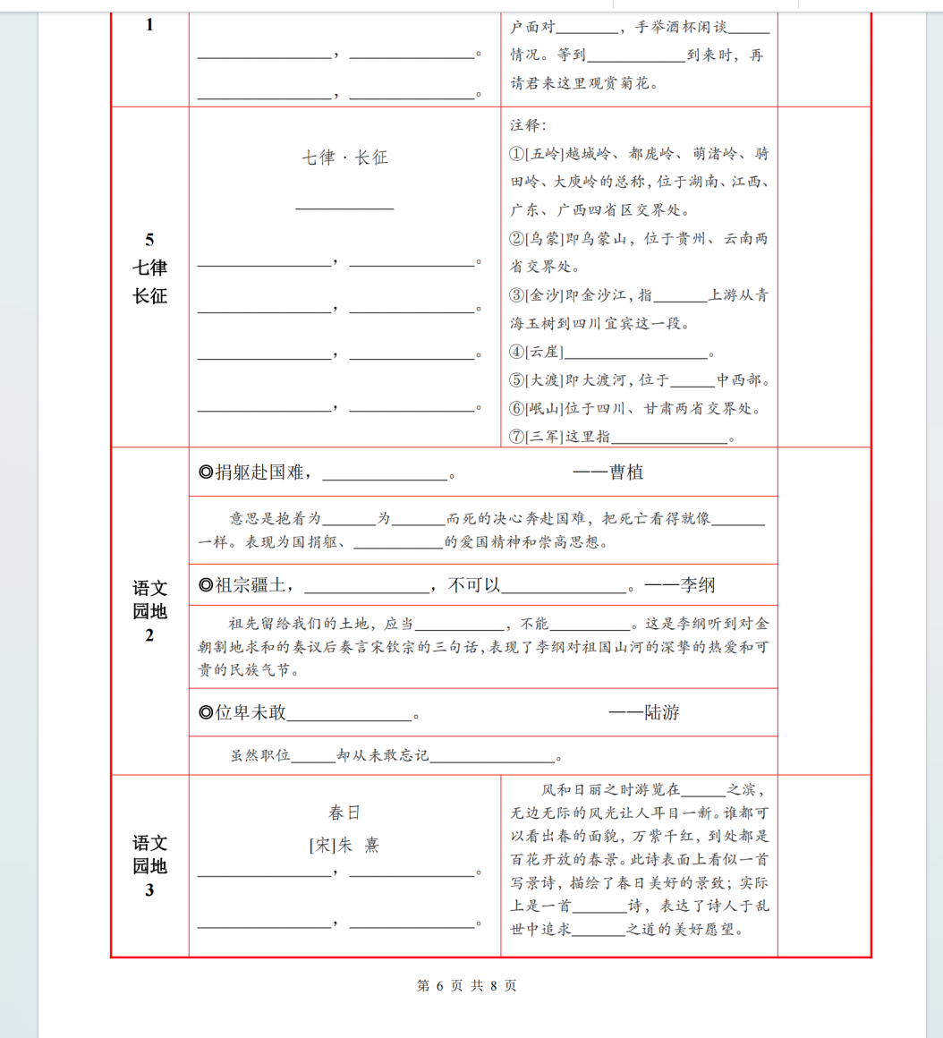 六年级上册语文必背内容+默写表.pdf